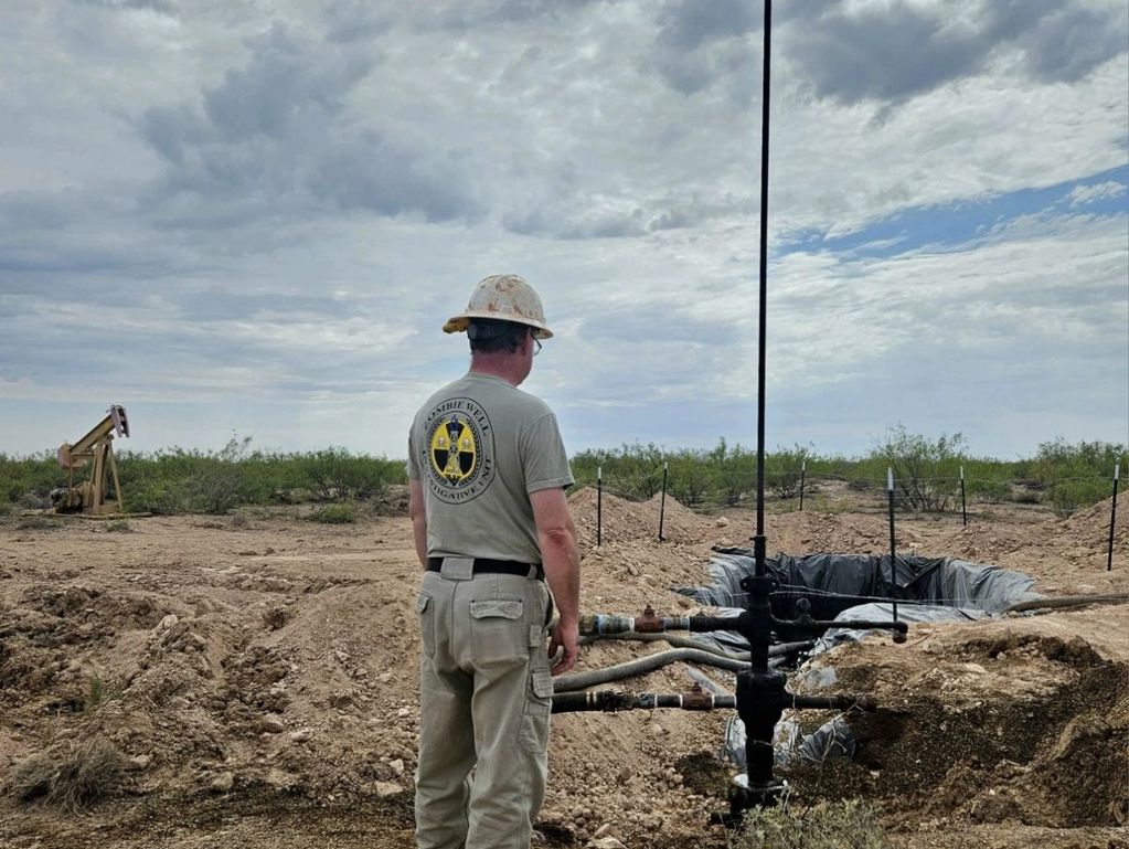 President Raymond L. Straub Jr. of Straub Corporation overlooks a wellhead and lined containment pit. As the Captain of the Zombie Well Investigative Unit, Mr. Straub leads from the front—personally engaging with field crews to assess leaking wells and oversee critical site operations.